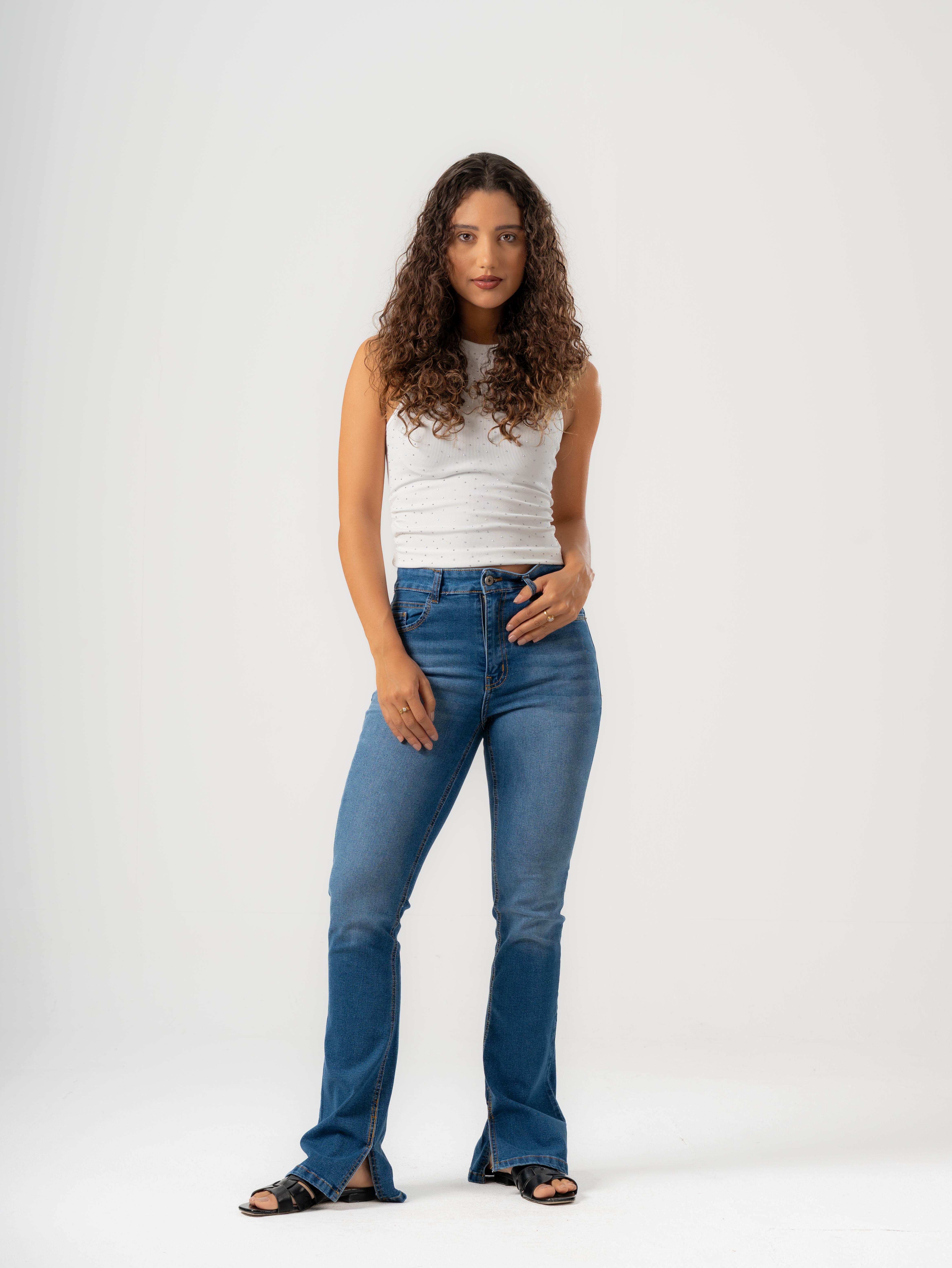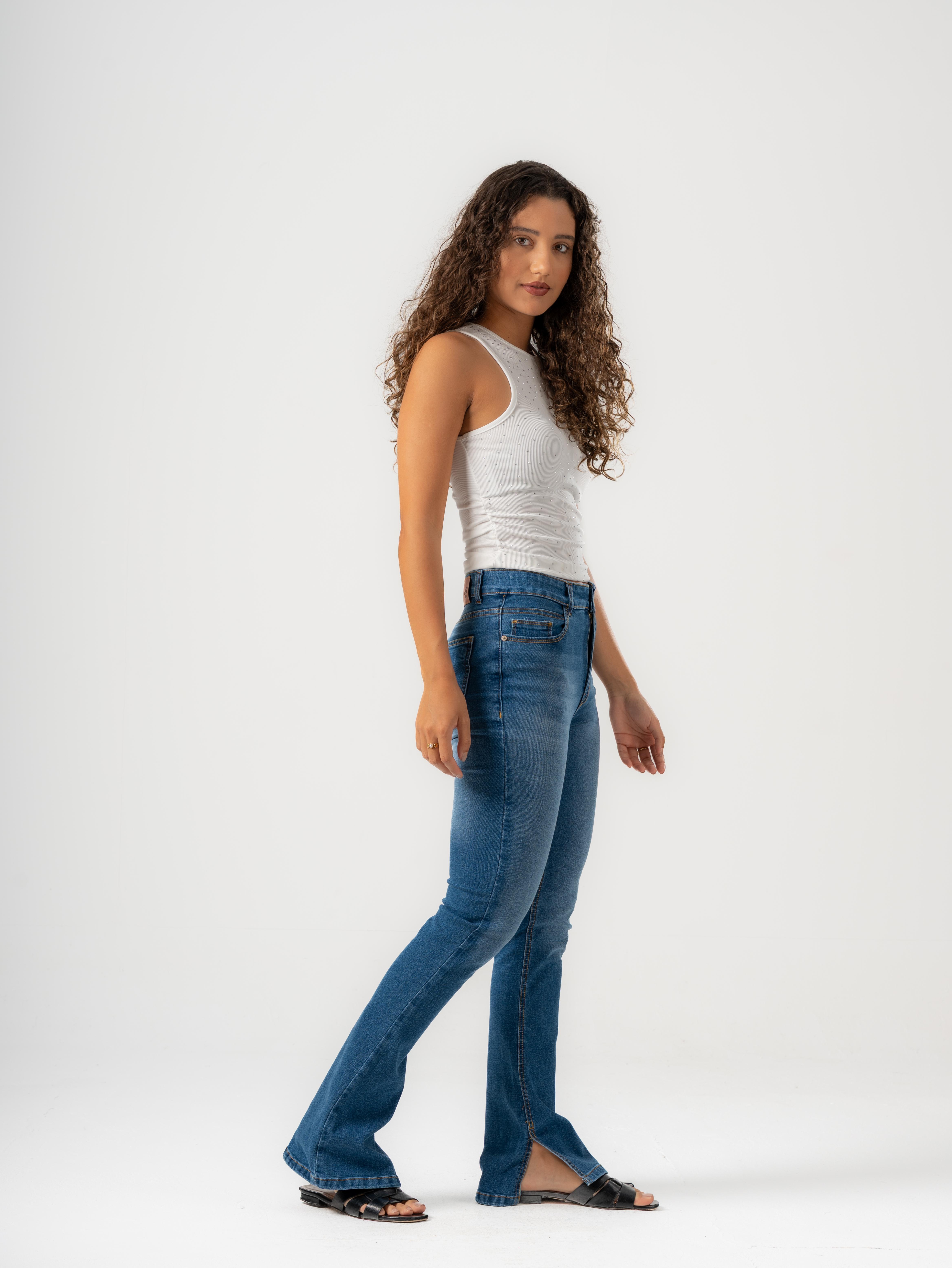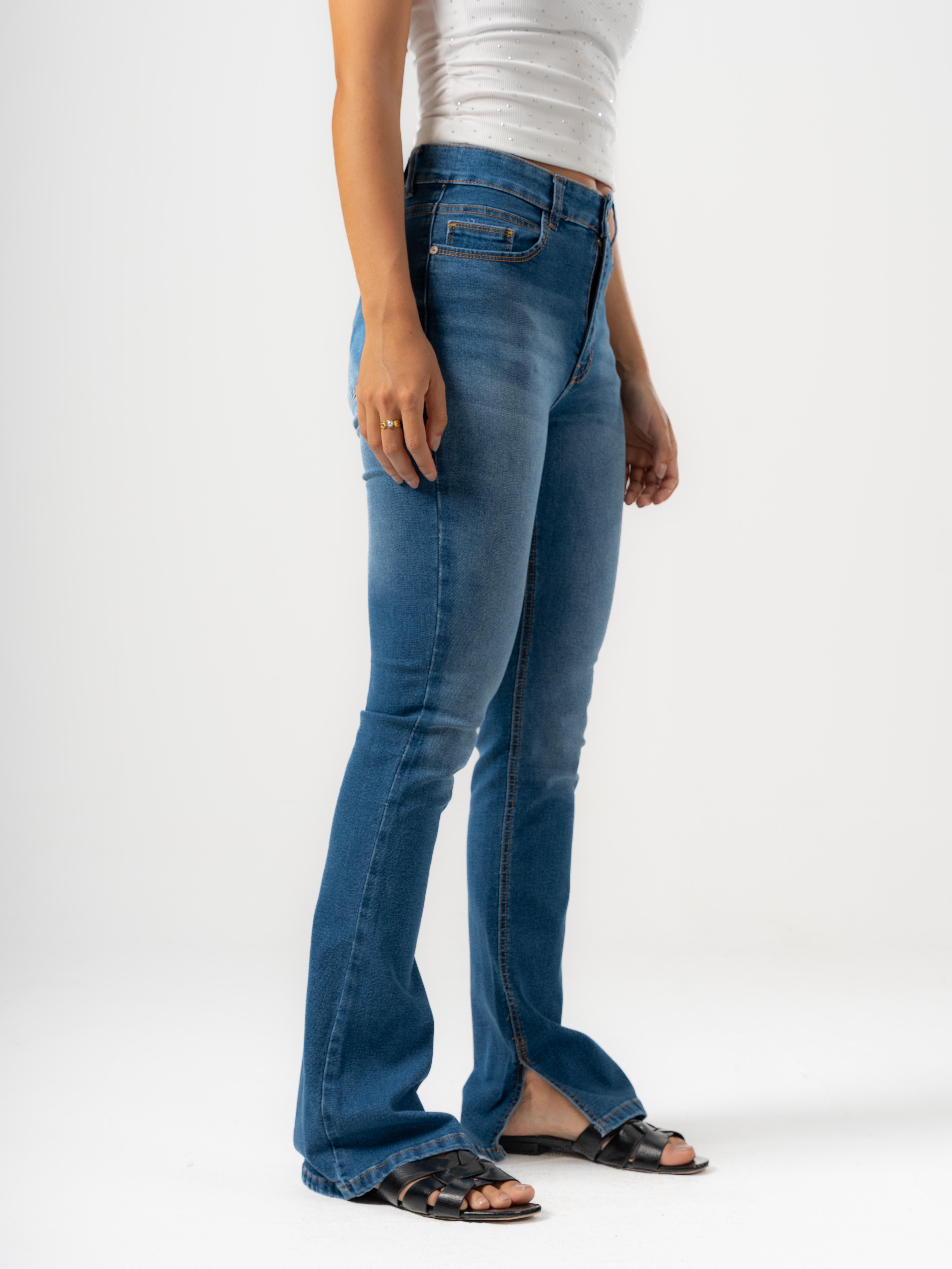 Fit: Boot-cut fit with small open at hem