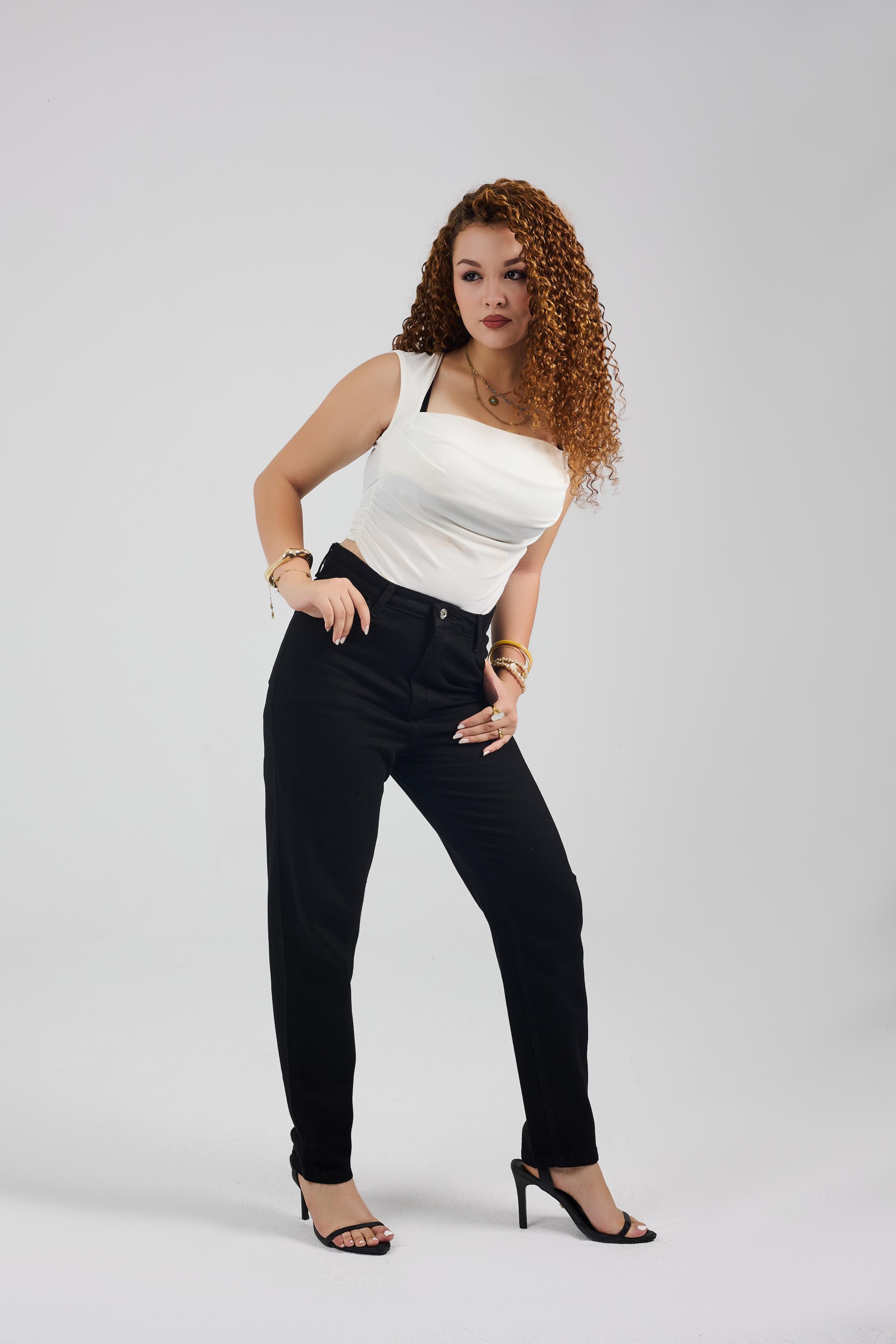 Fit: Mom-Fit Material: Gabardine Color: Black