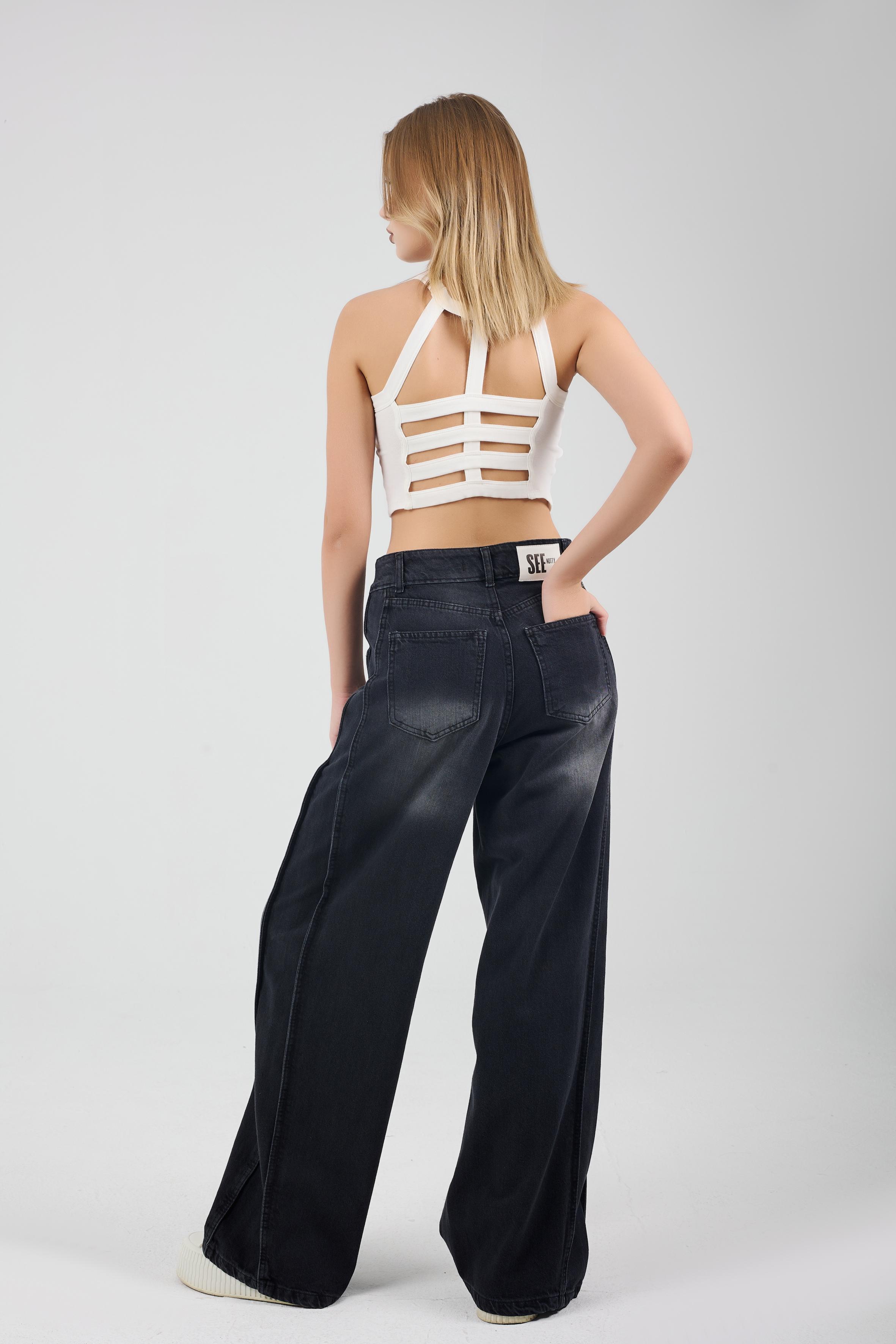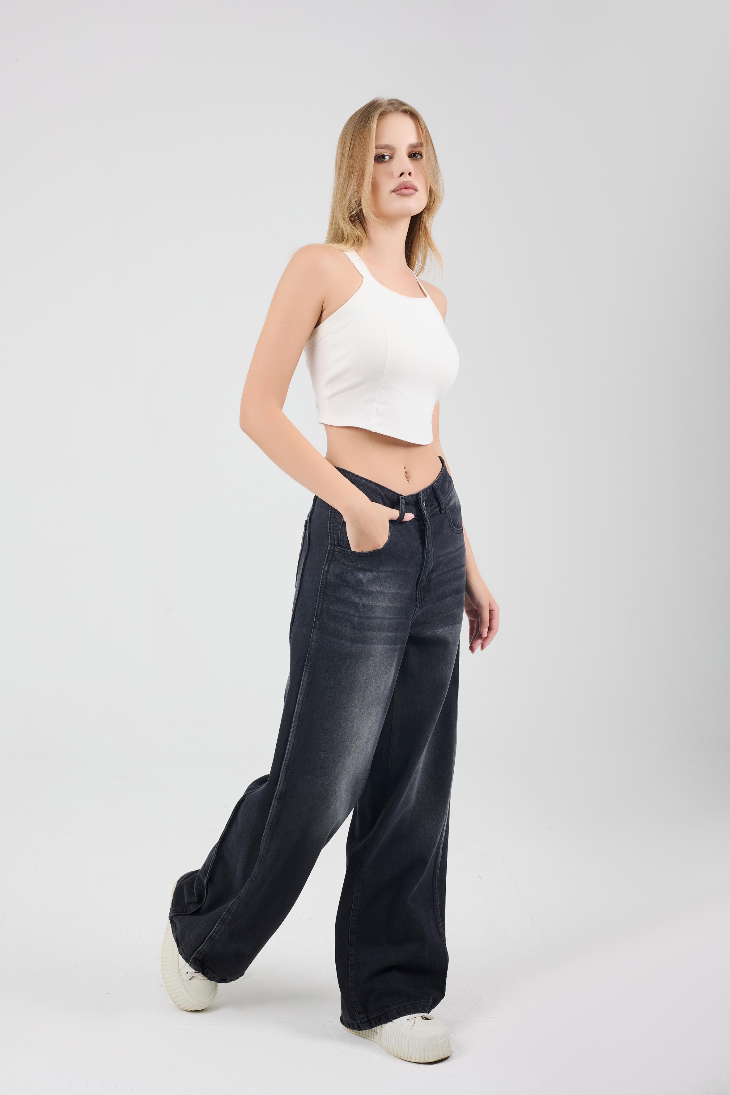 Fit: Wide-Leg Material: 100% Cotton Color: Charcoal Black