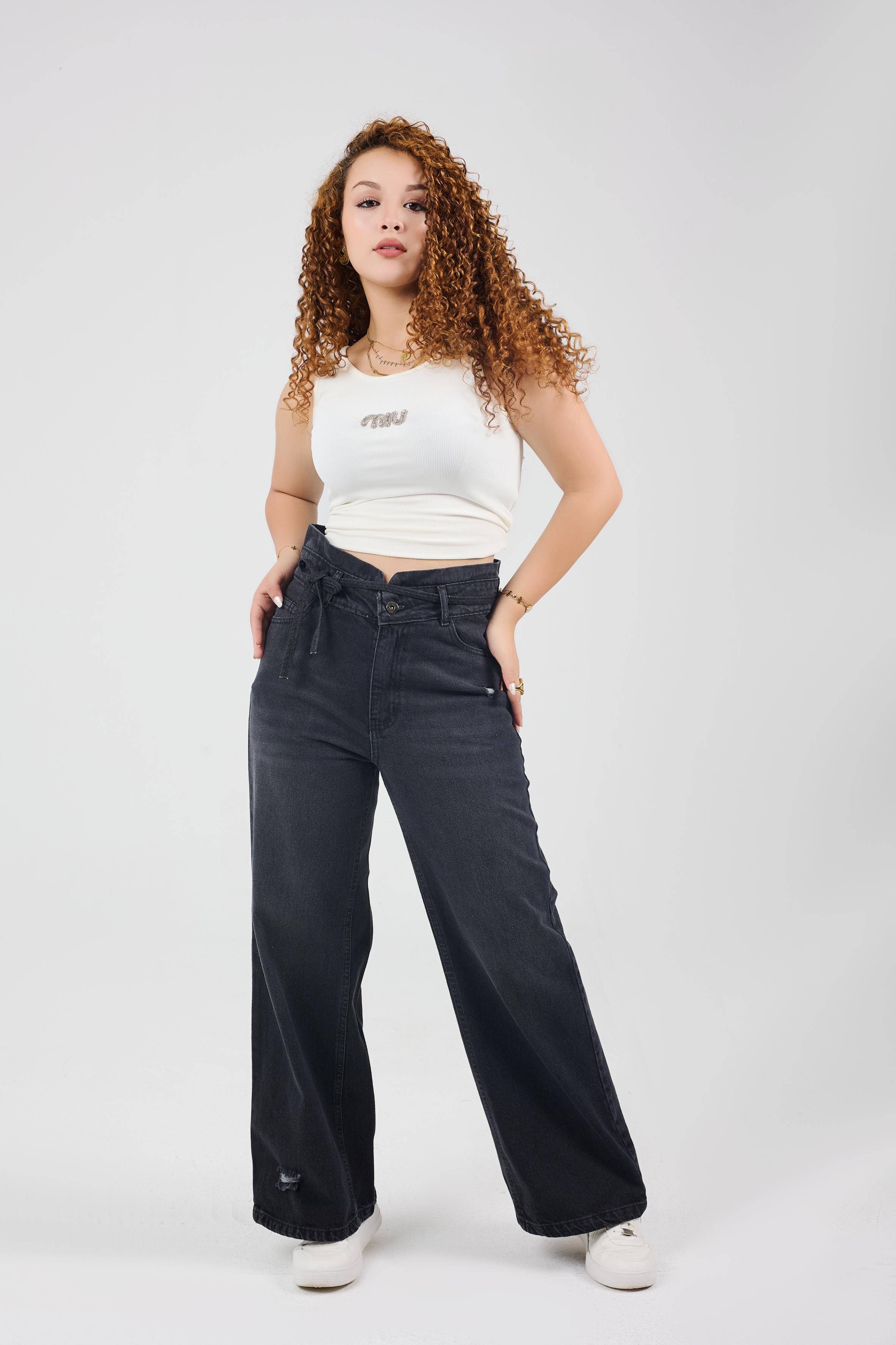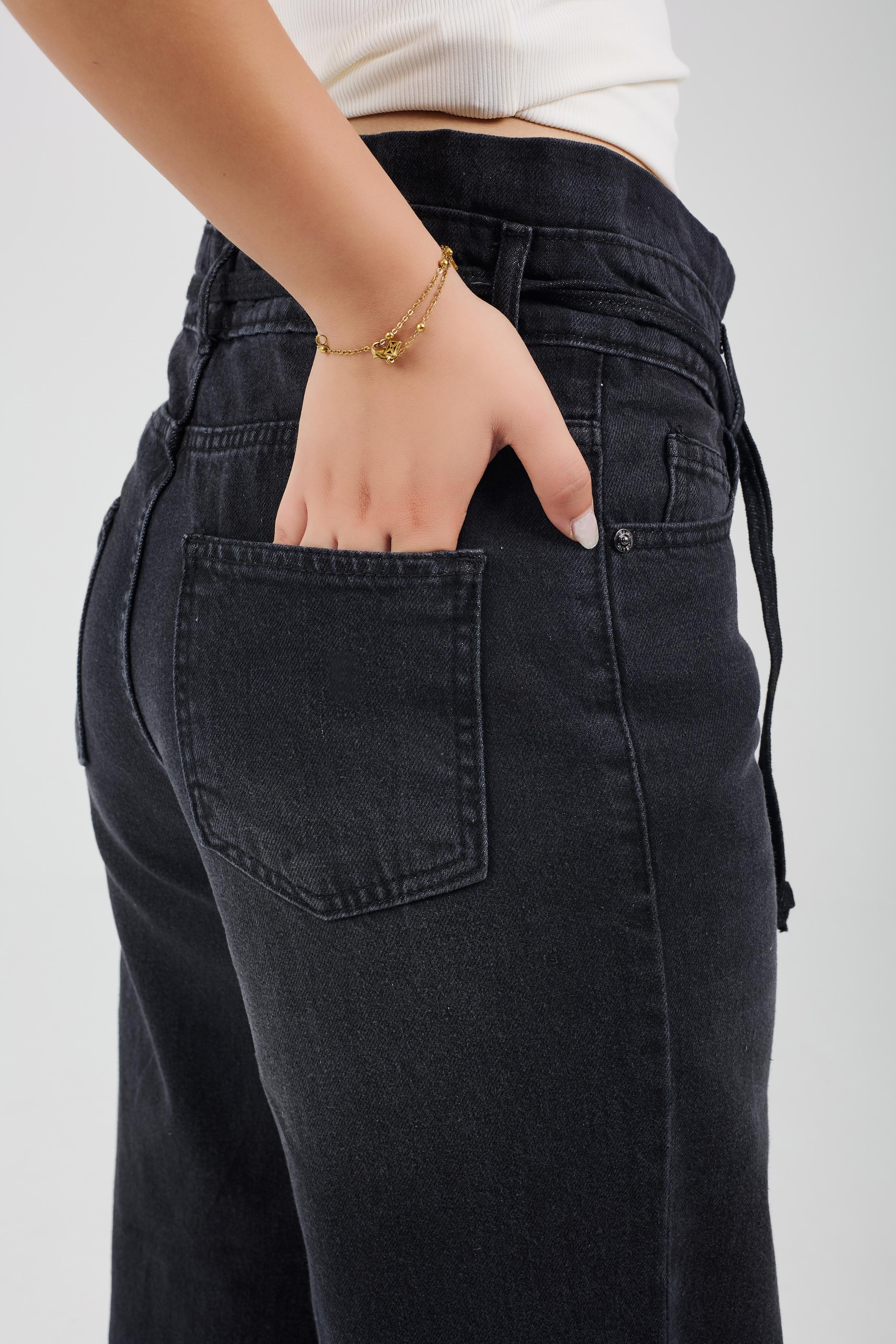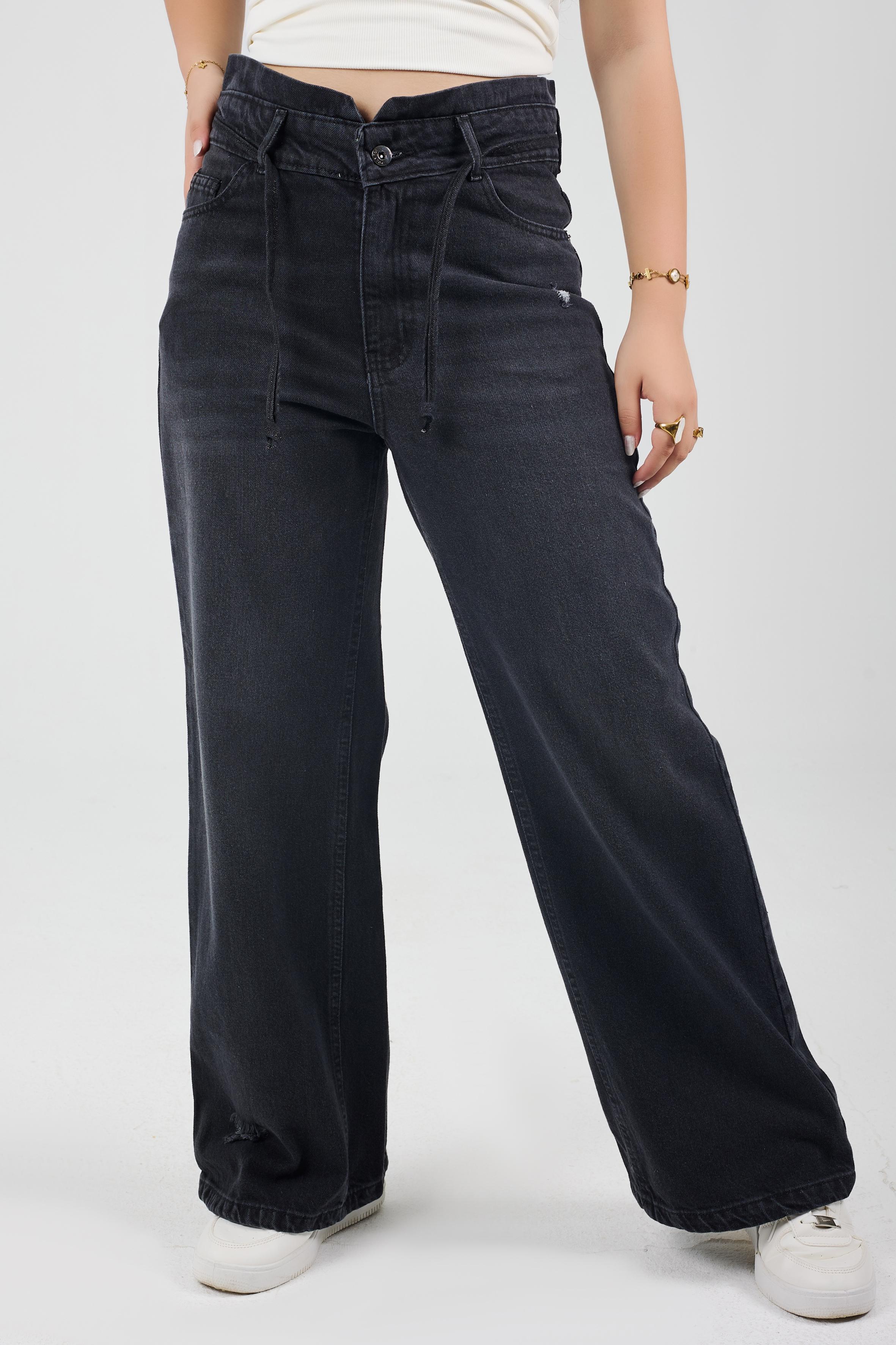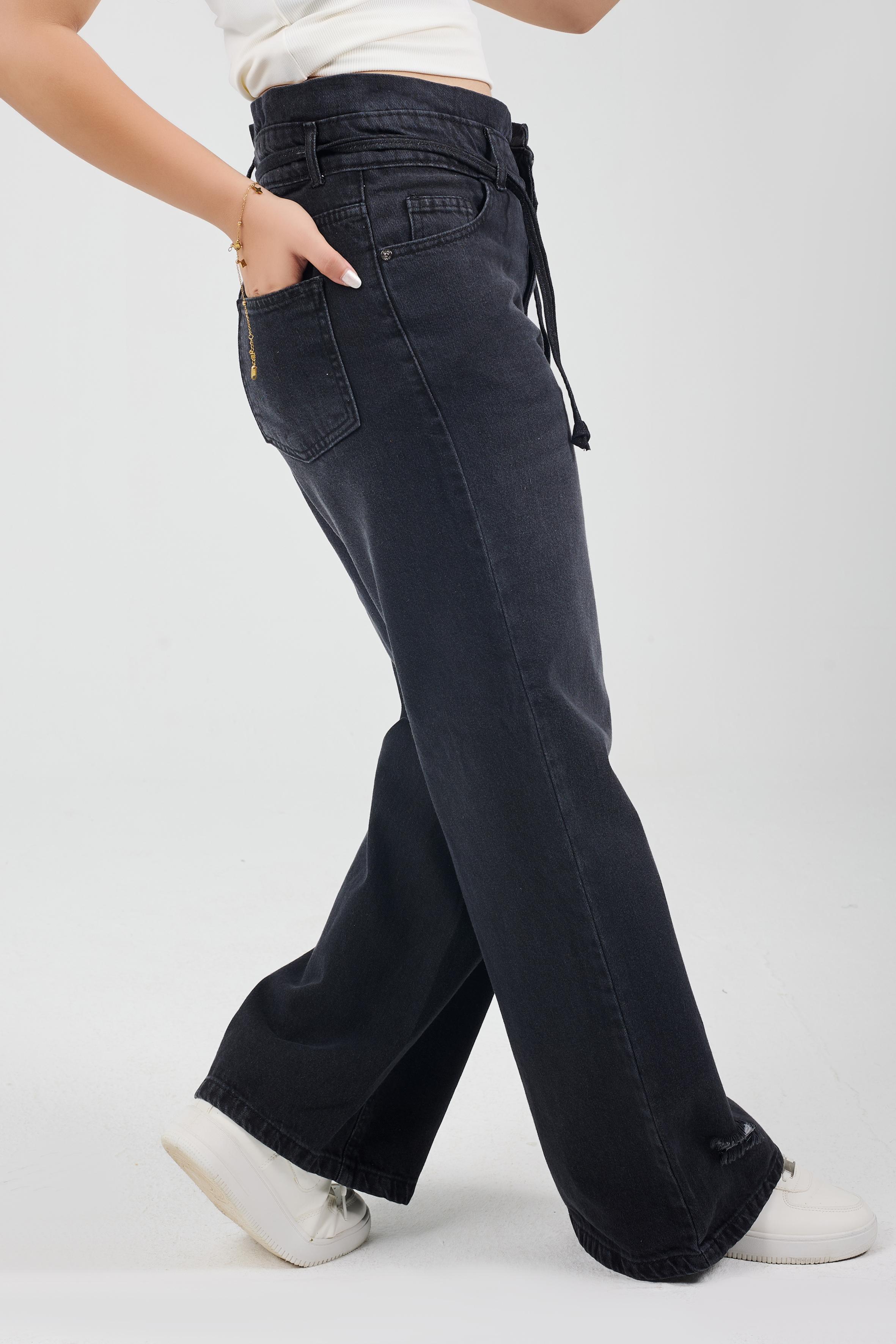Wide-Leg Charcoal Denim With Drawstring