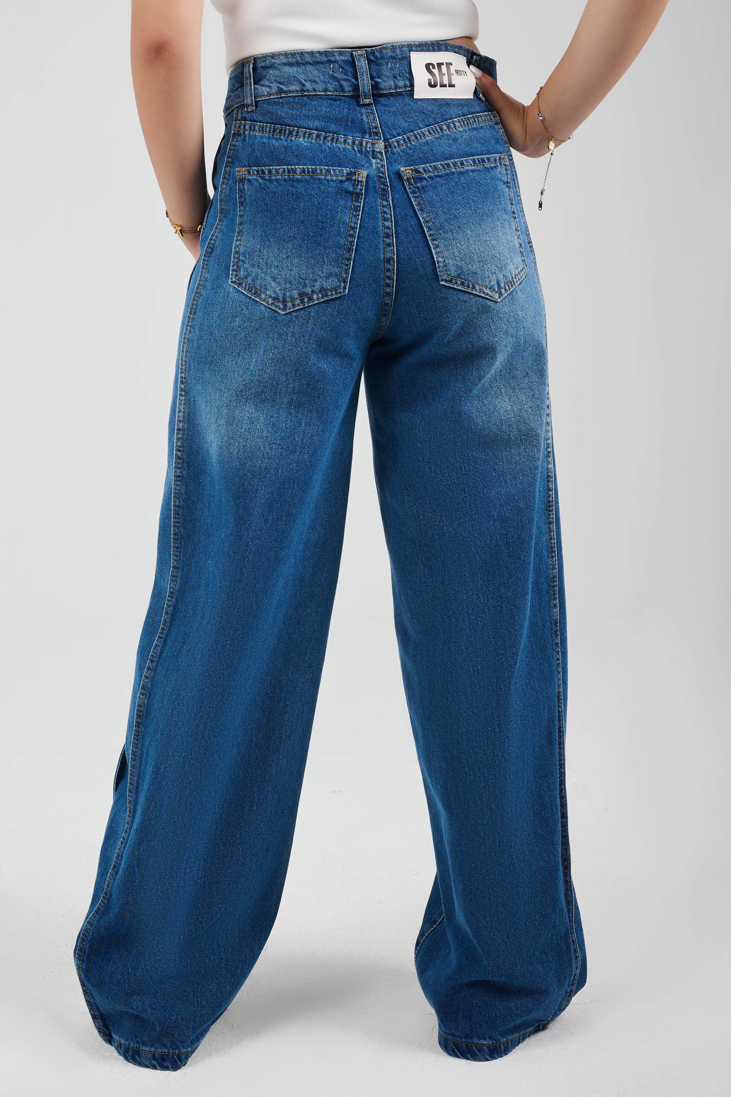 Fit: Wide-Leg Material: 100% Cotton Color: Dark-Blue